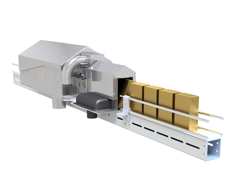 ติดตั้งได้เร็วและง่ายกว่าโซลูชั่นอื่นๆ เครื่องเป่าแห้งกล่องลามิเนตชนิดนี้สามารถยึดเข้าที่โดยไม่จำเป้นต้องแยกสายพานลำเลียงออกจากกัน
